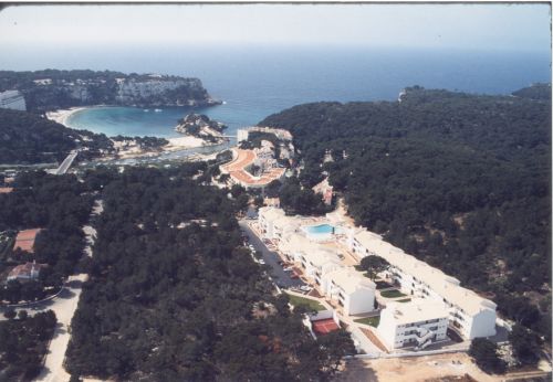 Edificación de Conjunto Hotelero con 123 apartamentos y bungalows, ajardinamiento interior, piscinas, salones, comedores y zonas de servicio en la Urbanización Serpentona Cala Galdana. Promotora: CONTRO, S.A.